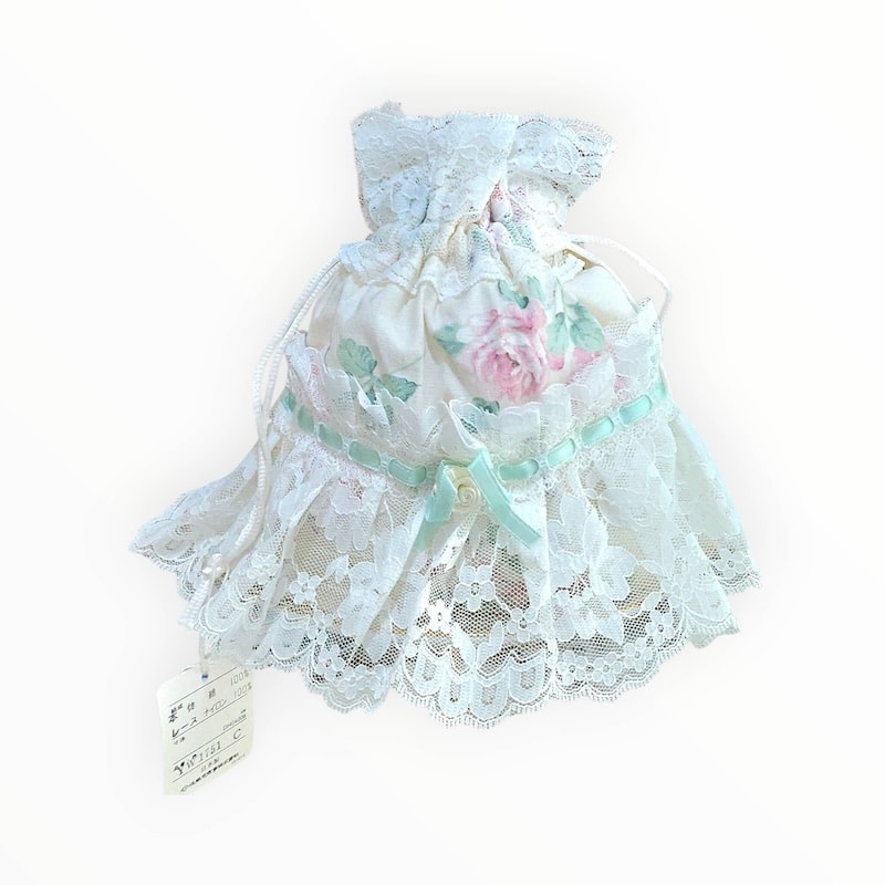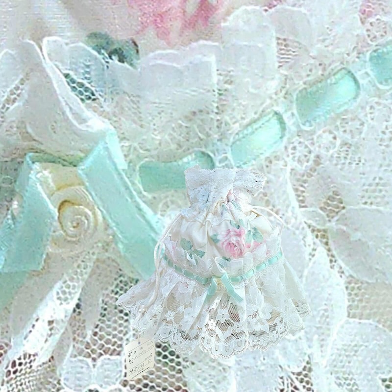 กระเป๋ารูดลูกไม้โทนมิ้นต์พาสเทล ดีไซน์เลเยอร์ลูกไม้ลายดอกไม้ละเอียด