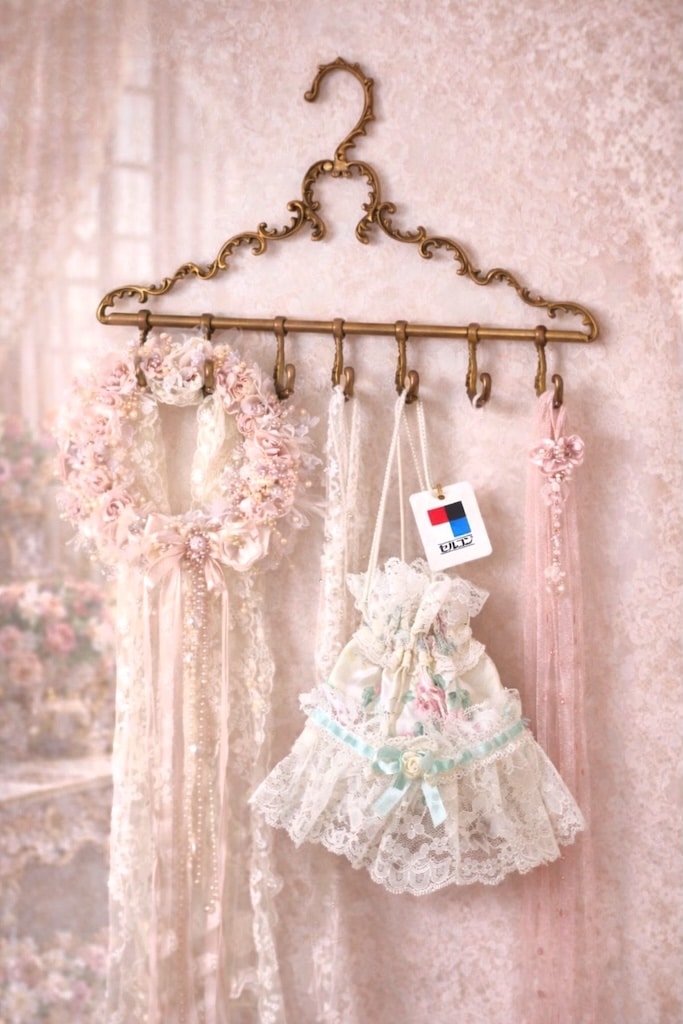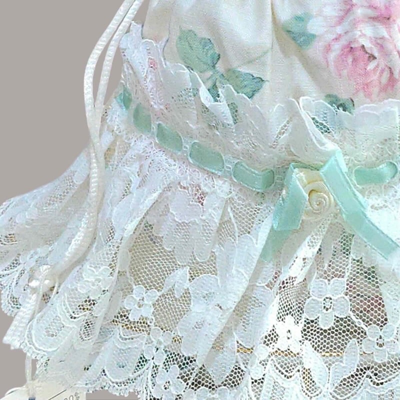 ตกแต่งริบบิ้นมิ้นต์และดีเทลดอกกุหลาบเล็กกลางชิ้นงาน เพิ่มความวินเทจอ่อนหวานอย่างประณีต