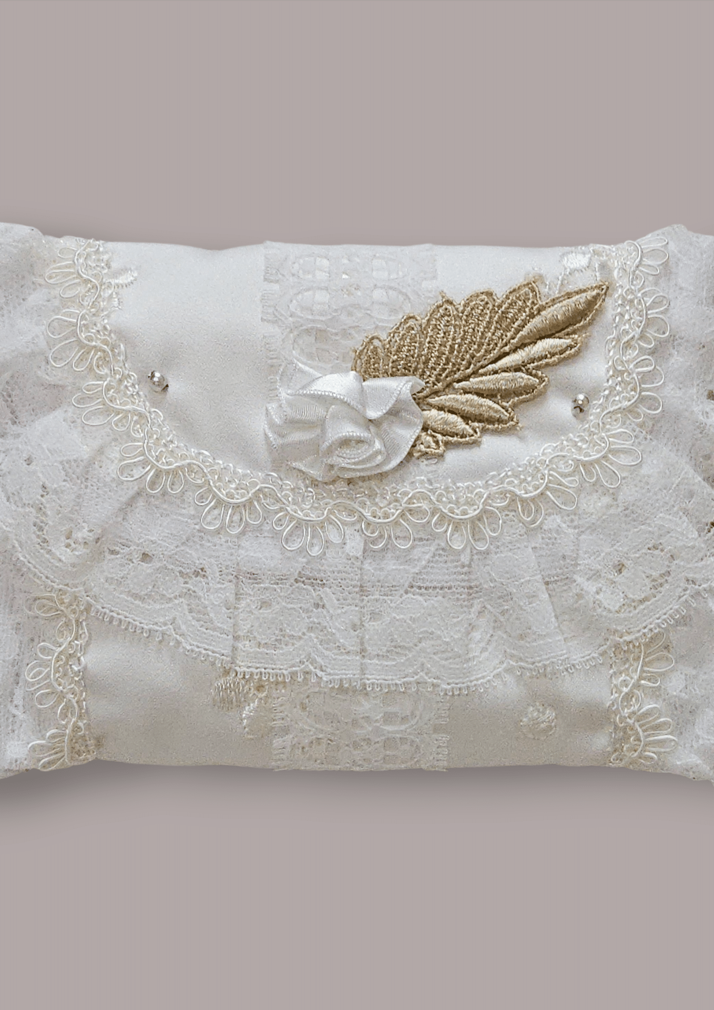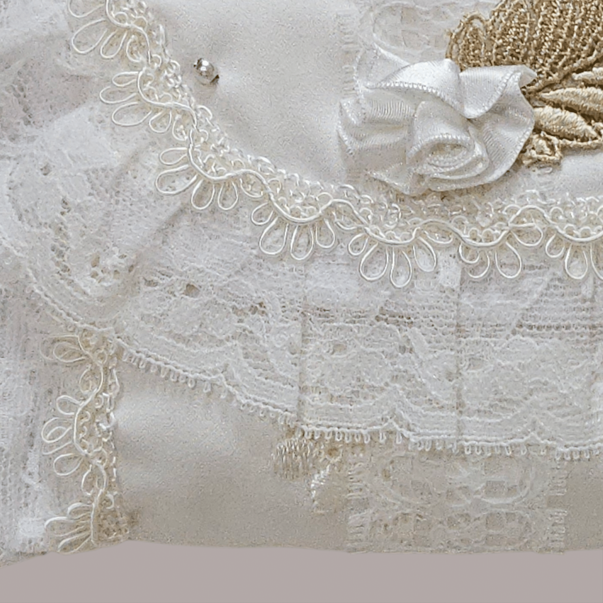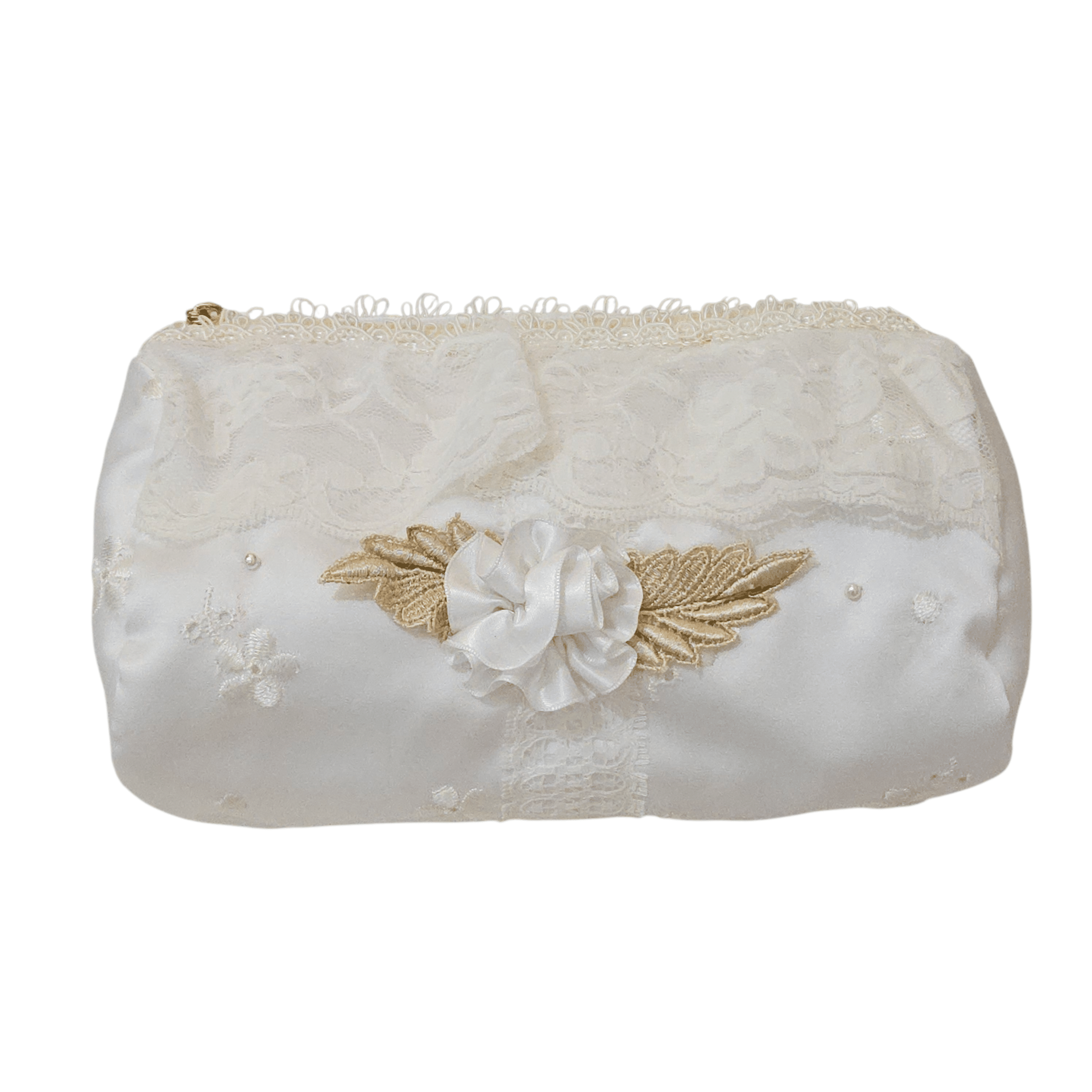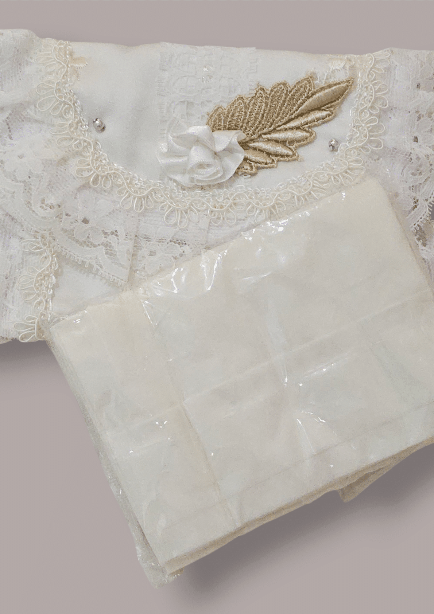 เซ็ตกระเป๋าโทนงาช้างดีไซน์หวานละมุนตัดเย็บด้วยผ้าลูกไม้เนื้อละเอียด