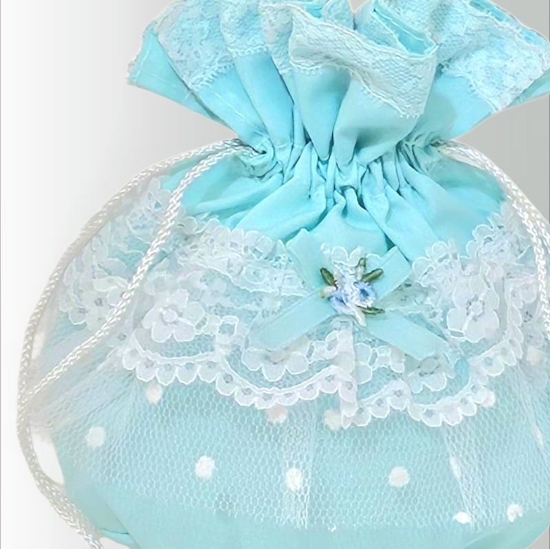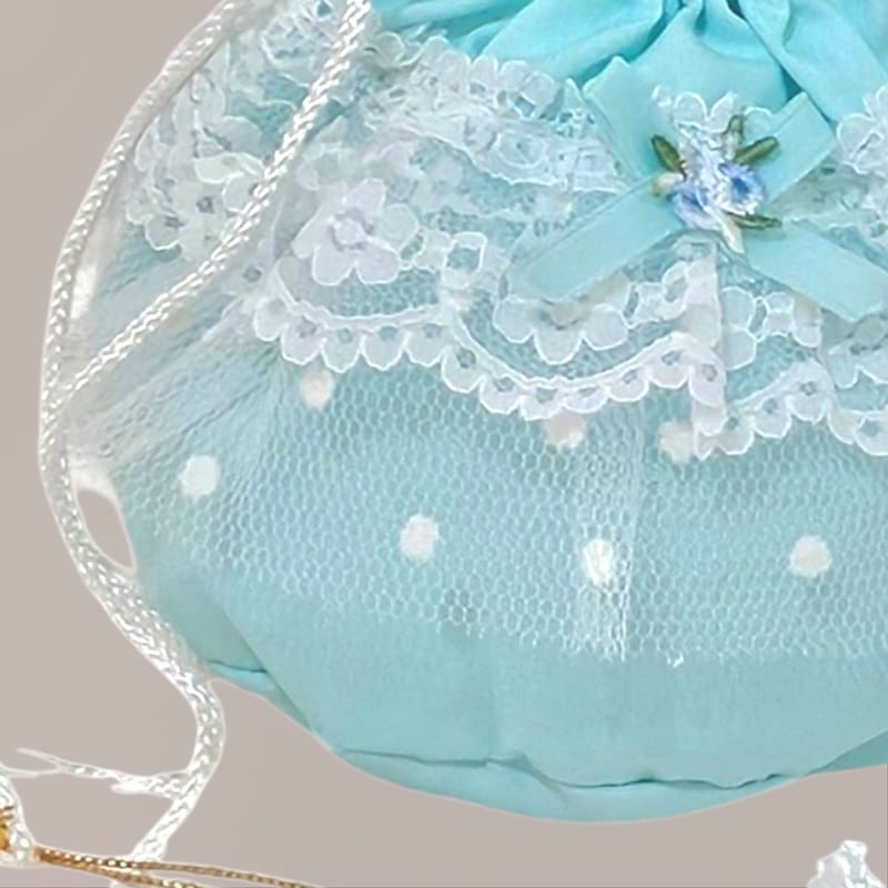 กระเป๋ารูดโทนพิสตาชิโอมิ้นต์ ดีไซน์ลูกไม้สีขาวเลเยอร์ละเอียด