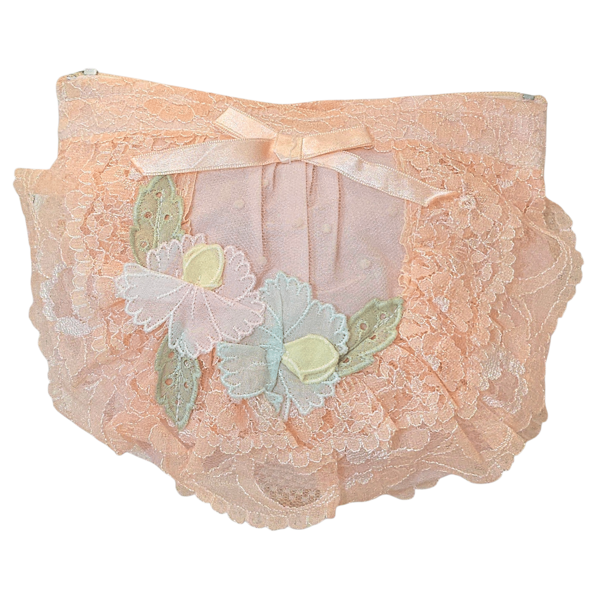 กระเป๋าคลัทช์ลูกไม้สีพีชอ่อน งานระบายและดอกไม้เล็ก ๆ ดูอ่อนโยนมาก
