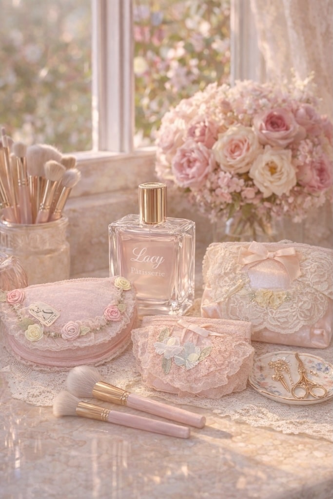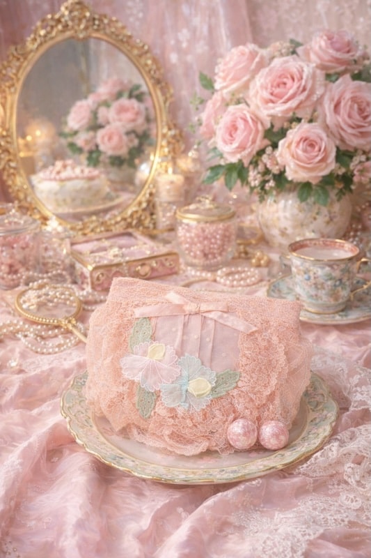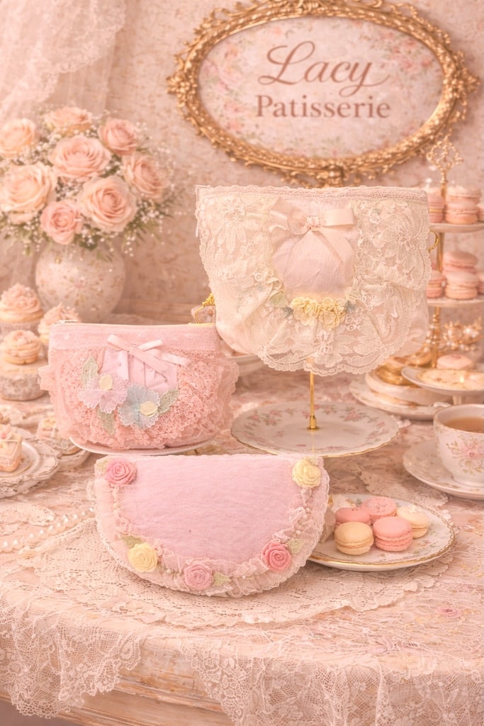 กระเป๋าลูกไม้โทนพีชชมพูหวาน ดีไซน์ละมุนสไตล์วินเทจญี่ปุ่น