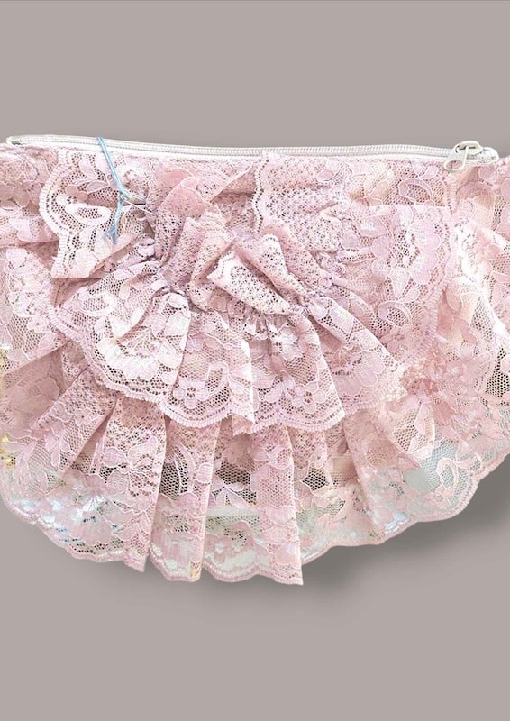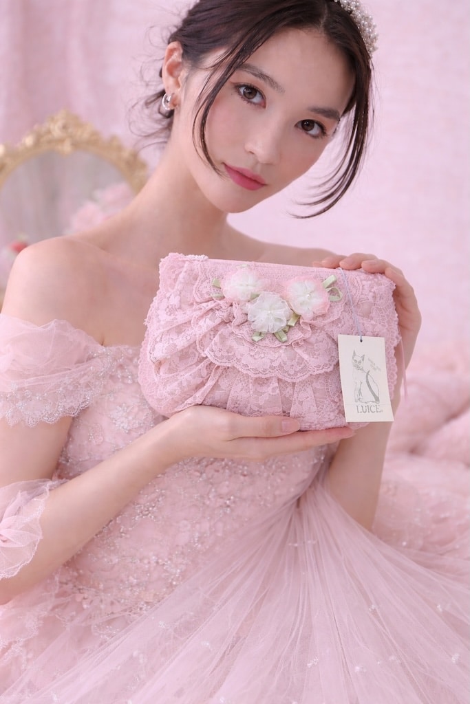 กระเป๋าลูกไม้โทนชมพูกุหลาบ ดีไซน์เลเยอร์ระบายฟู หรู